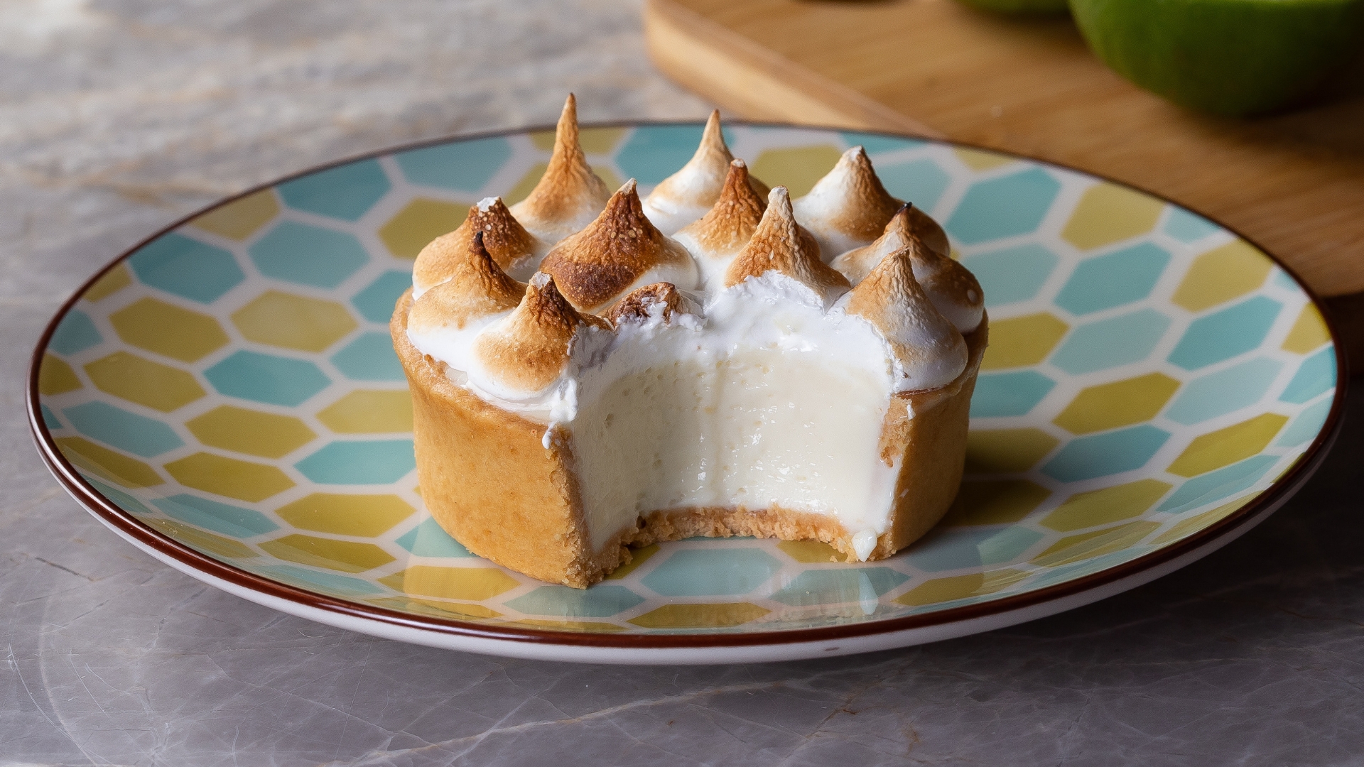 Montagem da torta: com a massa das Tartaletes já frias, adicione primeiro o recheio até ele preencha a metade da massa individual de cada tortinha. Logo em seguida, acrescente o merengue por cima de cada um. Se preferir, para decorar, use um bico de confeiteiro largo e redondo e faça pequenos picos ao colocar a cobertura. Para um toque especial e sabor caramelizado, use um maçarico para dourar o merengue.