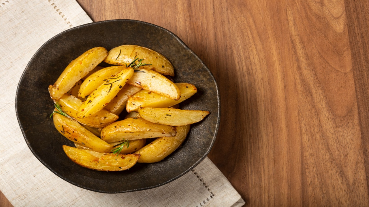 A receita de Batatas Assadas com Alecrim tem aproximadamente 150 calorias em 100 gramas.