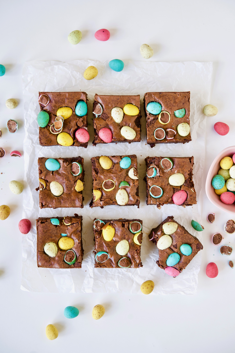 Essa é uma receita de brownie tradicional de chocolate que eu aproveitei a época de Páscoa e decorei com ovinhos de chocolate. Além de bonito fica delicioso!