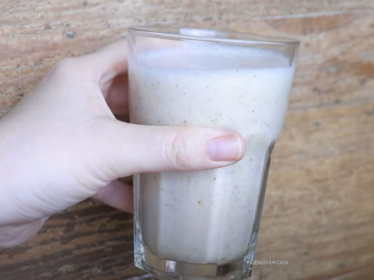 Coloque todos os ingredientes em um liquidificador e pronto, a receita está pronta para consumo.